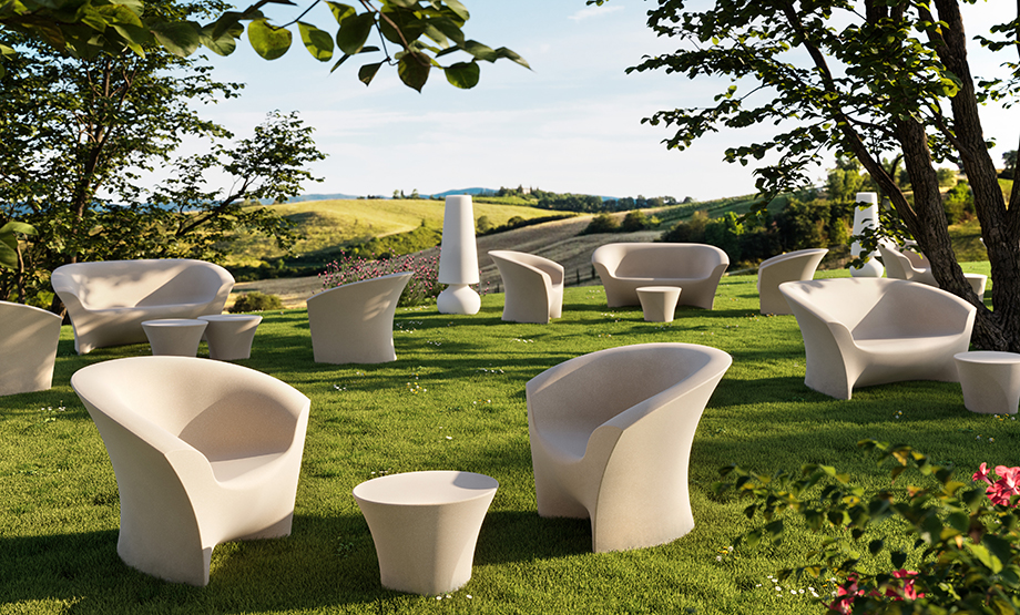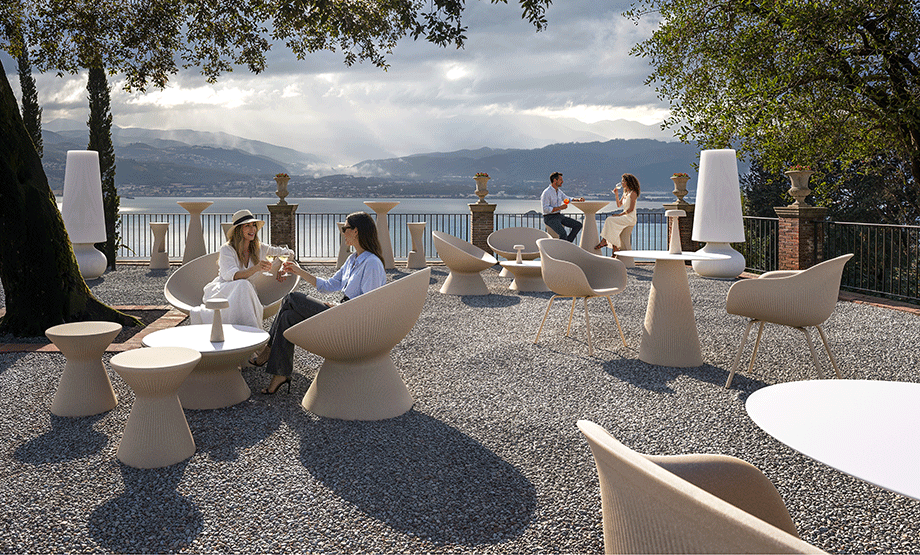 Inspirerend en creatief design in tuinmeubelen en -accessoires voor outdoor genieten. Italiaanse elegantie. Eventueel lichtgevend voor lange feestavonden met vrienden. Comfortabel, licht en betaalbaar. Uiteraard ook mogelijkheden in binnentoepassing.